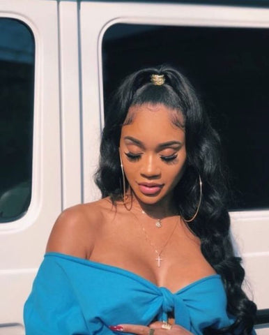 As we said above, you can wear a wig in a ponytail, but not every kind of hair wigs can achieve high ponytail styles. For example, 13x4 lace front wigs and 13x6 lace front wigs. These two types of lace front wigs can not cover the entire head, so they can not do high ponytails. Below I will introduce two lace wigs that can achieve high ponytail hairstyles.
